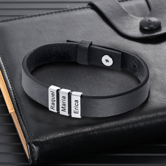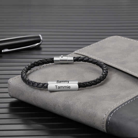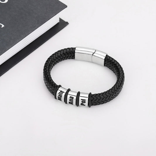 Pulsera personalizada hombre - Cuero trenzado con nombres fijos
