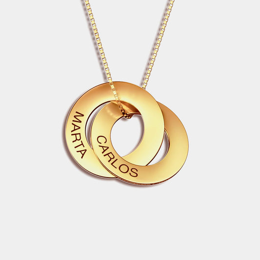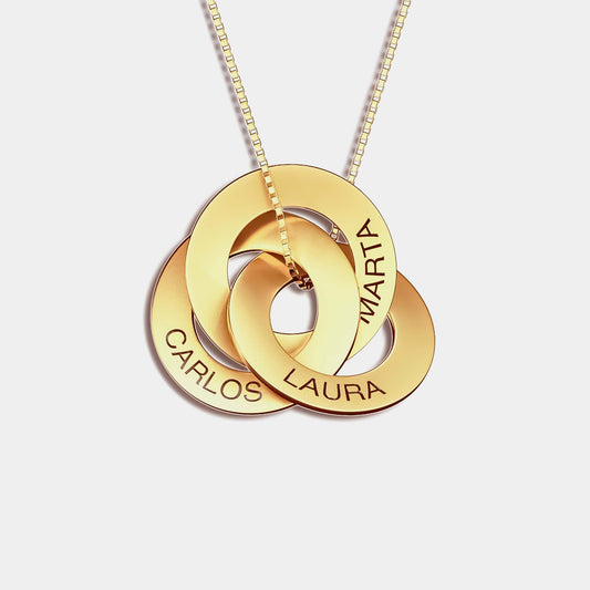Collar de círculos entrelazados con nombres grabados