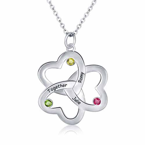 Collar corazones en plata con nombres