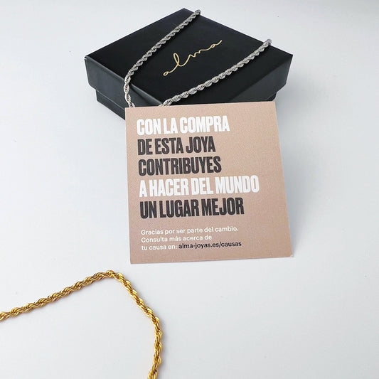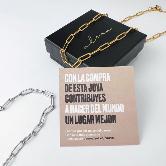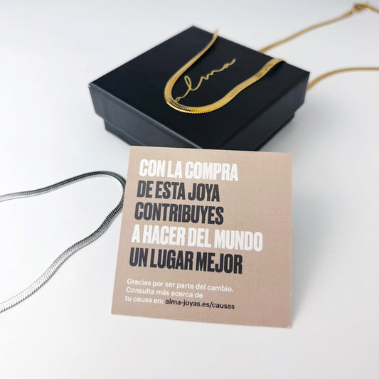 En Alma fabricamos joyas con un significado especial y con impacto positivo en la sociedad: Por cada joya vendida, plantamos un árbol o donamos el 15% de nuestros beneficios a distintas causas sociales.